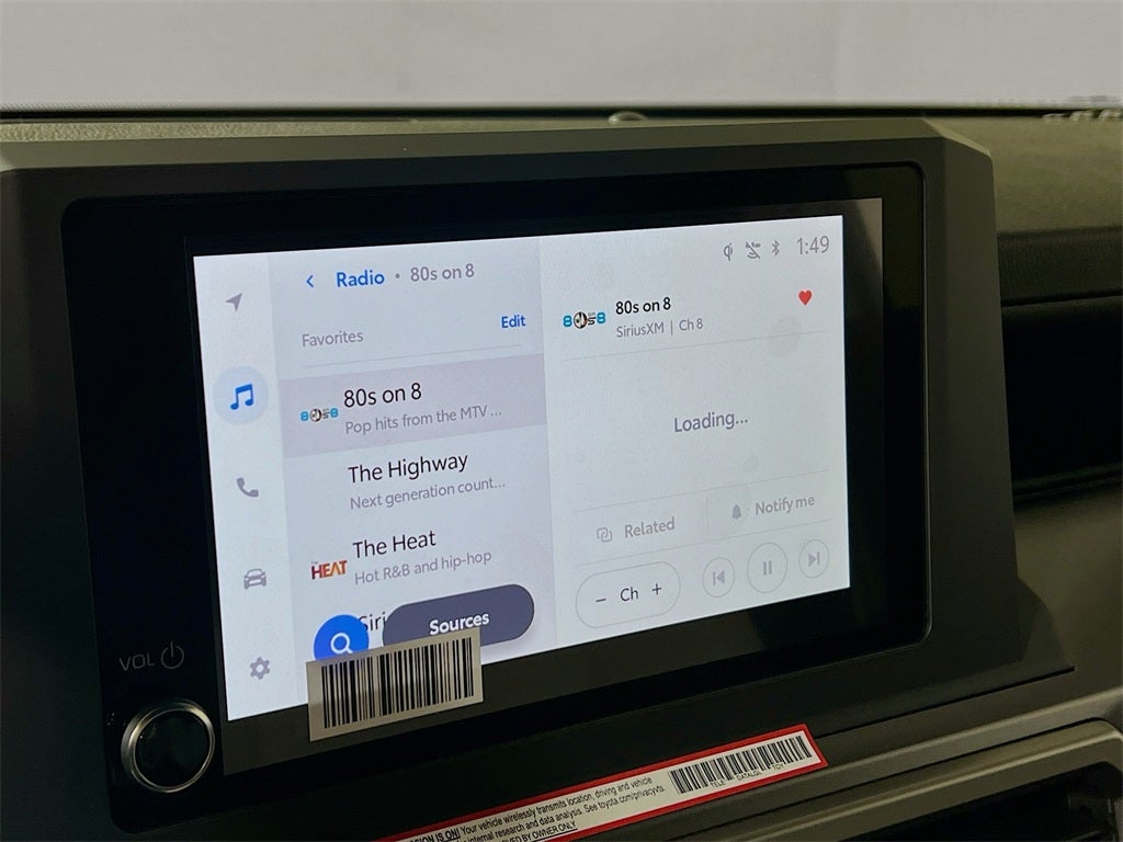 - Radio: 8" Audio -inc: multimedia display w/8-speaker audio system, wireless Apple CarPlay and Android Auto compatibility, SiriusXM 3-month trial, See toyota.com/audio-multimedia for details