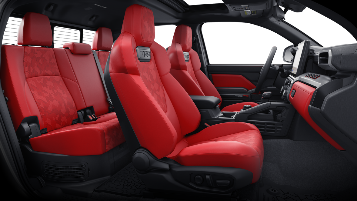 - TRD Pro SofTex®-trimmed IsoDynamic Performance seats with contrast stitching and technical-camo-pattern inserts; heated and ventilated 6-way power-adjustable driver and front passenger seats with 2-way manual recline and 4-way power-adjustable lumbar support