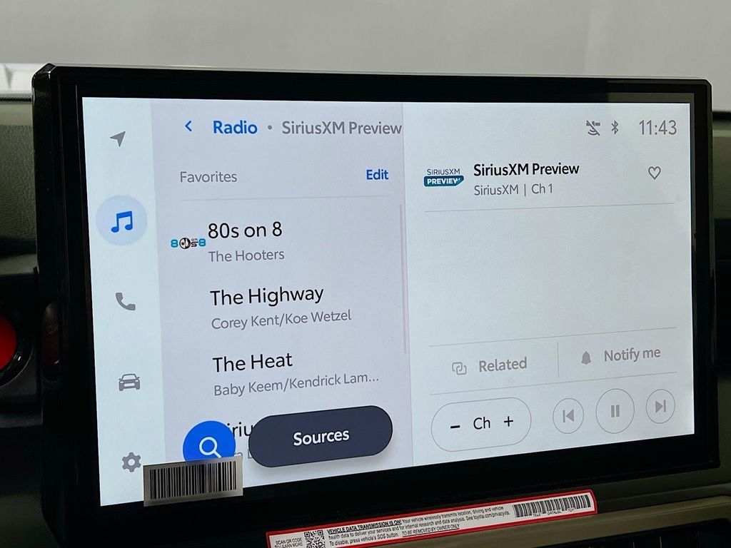 - 8-in. Toyota Audio Multimedia display with 6-speaker audio system, wireless Apple CarPlay® & Android Auto™ compatibility, SiriusXM® 3-month trial subscription. See toyota.com/connected-services for details.