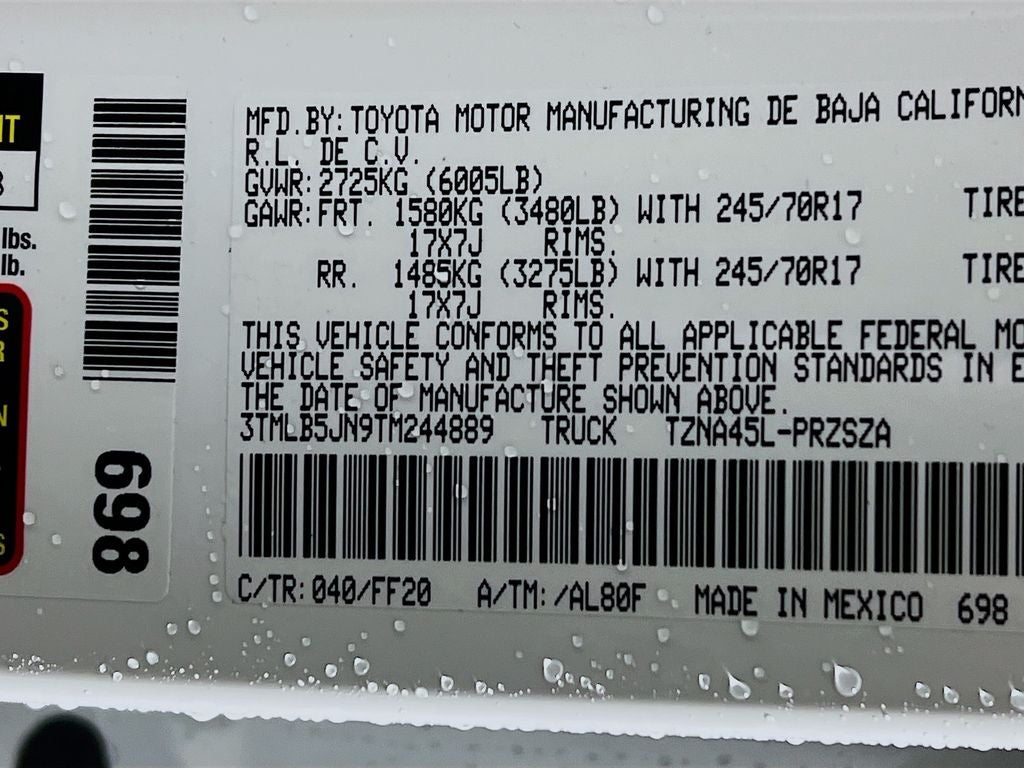 - Vehicle Name: Toyota Tacoma 4WD