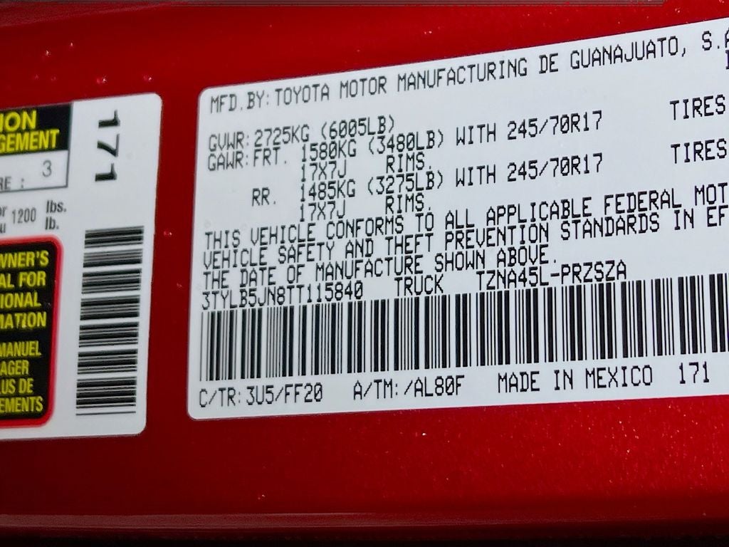 - Vehicle Name: Toyota Tacoma 4WD