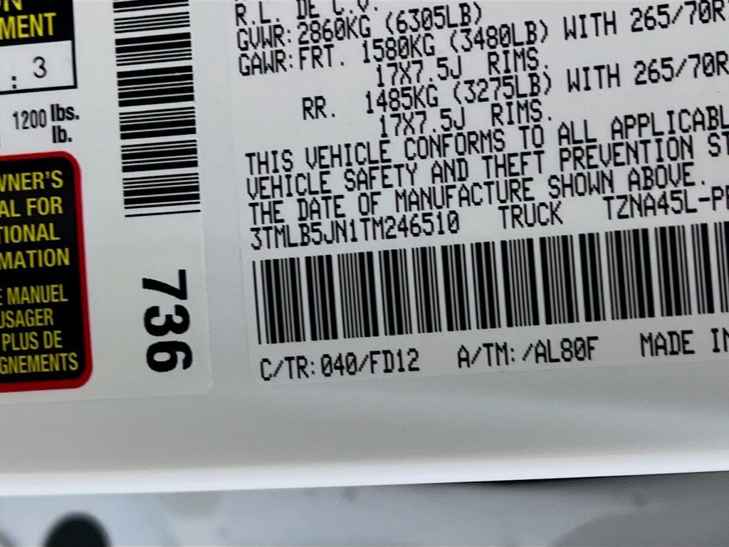 - Vehicle Name: Toyota Tacoma 4WD