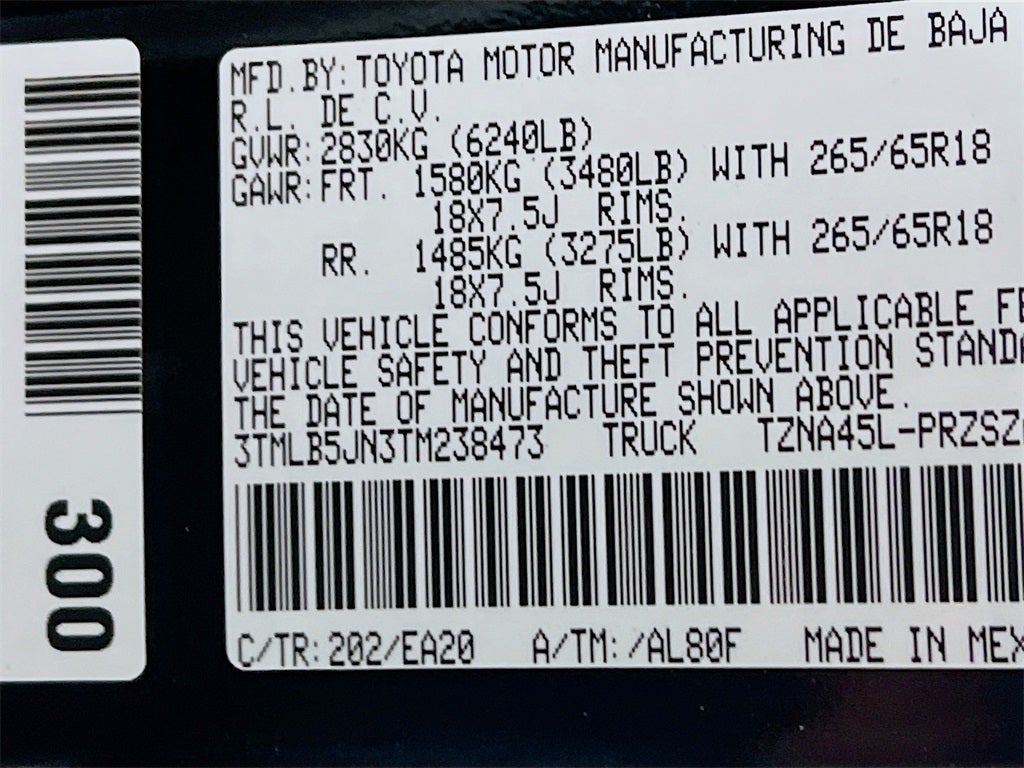- Vehicle Name: Toyota Tacoma 4WD