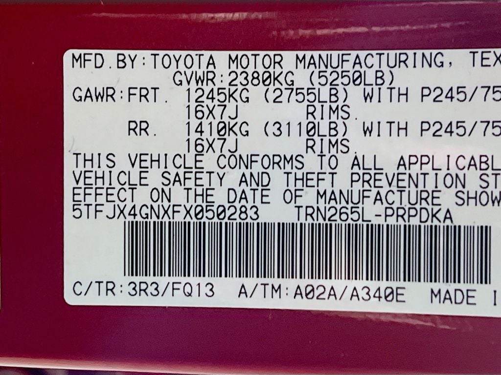 - Front Tire Size: P245/75SR16