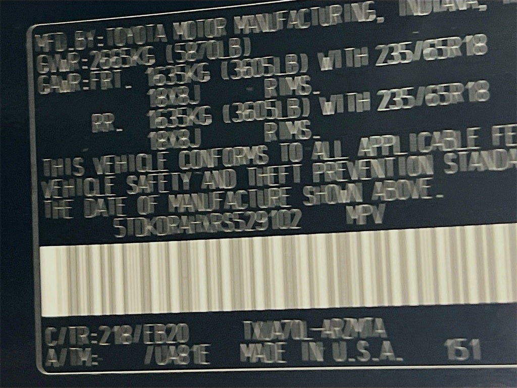 - Vehicle Name: Toyota Highlander